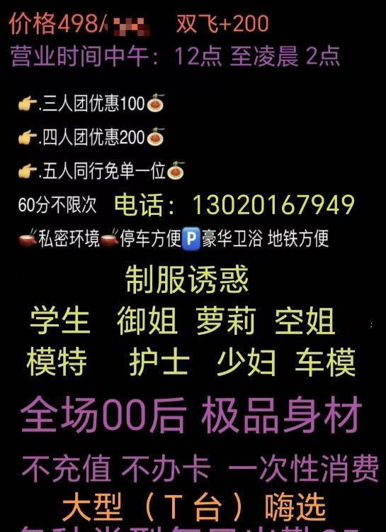 凡是有要求路费/定金/保证金/照片验证/视频验证等任何提前付费的行为,千万不要上当。同时也请注意仙人跳,在寻欢前不要露富和带过于贵重随身物品。本站为分享信息并不对寻欢经历负责,碰到有问题的信息,请及时举报给我们删除信息。