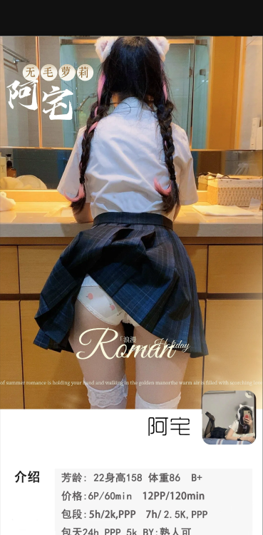 喜欢jk萝莉的兄弟有福了,是个萌萌的小女生,有自己的地方,干净又卫生,个子很矮,会的不多,剩在嫩,做